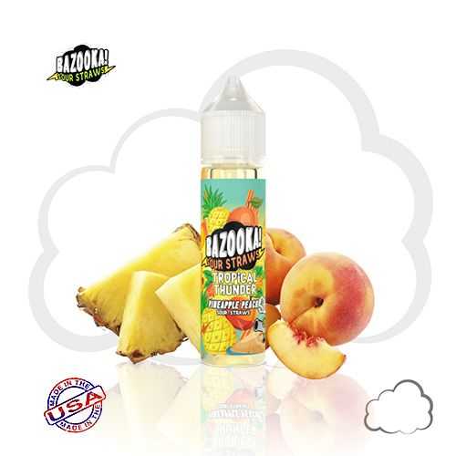 Pineapple Peach faz parte da linha Tropical Thunder de e líquidos da Bazooka! Palhas ácidas. Uma mistura tropical, este líquido e apresenta abacaxis exóticos por toda parte e foi misturado com tons sutis de pêssegos suculentos para adicionar uma leve borda floral a um perfil de sabor simples e eficaz.