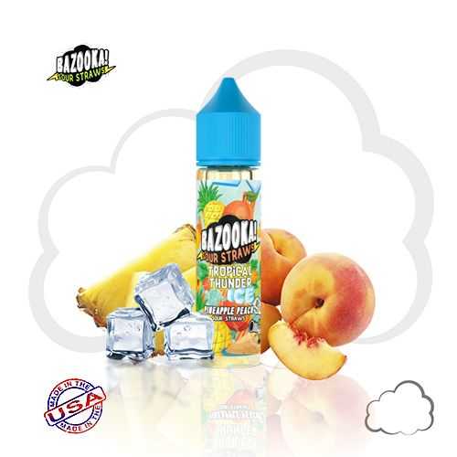 Pineapple Peach faz parte da linha Tropical Thunder de e líquidos da Bazooka! Palhas ácidas. Uma mistura tropical, este líquido e apresenta abacaxis exóticos por toda parte e foi misturado com tons sutis de pêssegos suculentos para adicionar uma leve borda floral a um perfil de sabor simples e eficaz com um mentol que da um toque gelado e refrescante