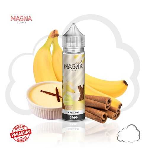 Com um delicioso blend de fruta e creme, a Magna traz a deliciosa mistura que lembra o gostinho do café da manhã ou lanche da tarde, para você saborear como se estivesse tomando uma inesquecível batida com sabor de banana, creme e canela. O eliquid Cremino da linha Dessert proporciona esta saborosa sensação na sua vaporização, que você pode usufruir a qualquer momento.