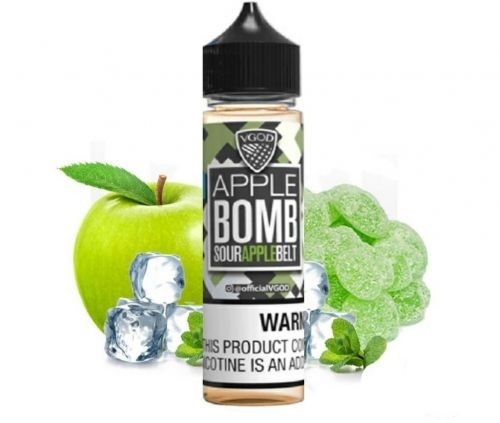 Apple Bomb Ice é uma maçã azeda Granny Smith frutada com salpicos de torta ao longo da inspiração misturada com um doce açucarado de cinto de maçã com um acabamento de mentol gelado.