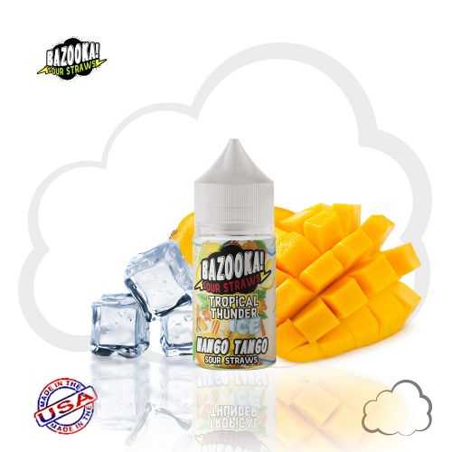 Mango Tango Ice por Bazooka Salt Tropical Thunder é a mistura perfeita de manga tropical e refrescante em canudos de doces azedos com sais de nic.
