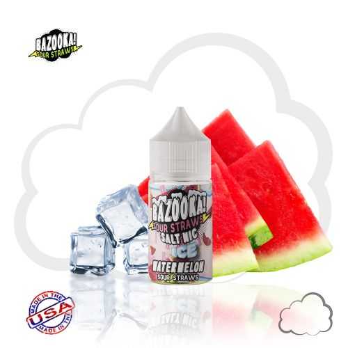 Watermelon Ice por Bazooka Sour Straws Salt Nic, doce de alcaçuz com sabor de mentol gelado e saboroso ao inalar. Na expiração, a refrescante melancia se mistura com açúcar agridoce.