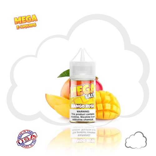 Sabor: Mega Salts apresenta o e-Liquid Mango Rush, composto por uma deliciosão fusão de mangas frescas e p​êssegos suculentos.